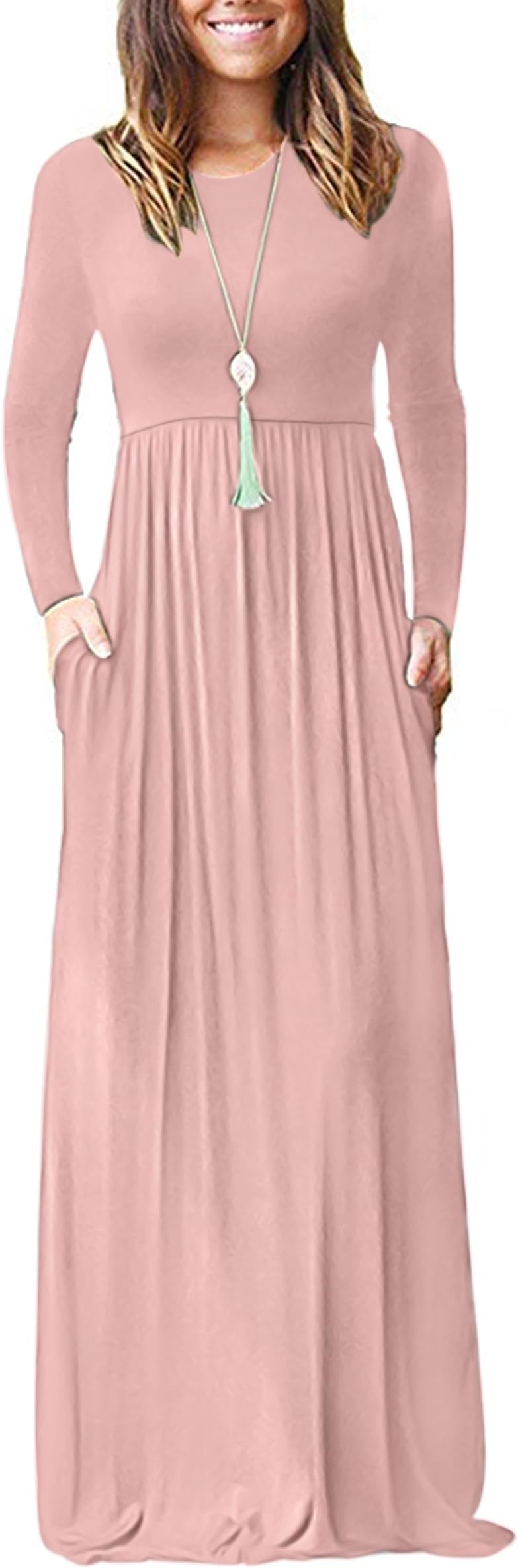 - Pink long sleeve maxi dress