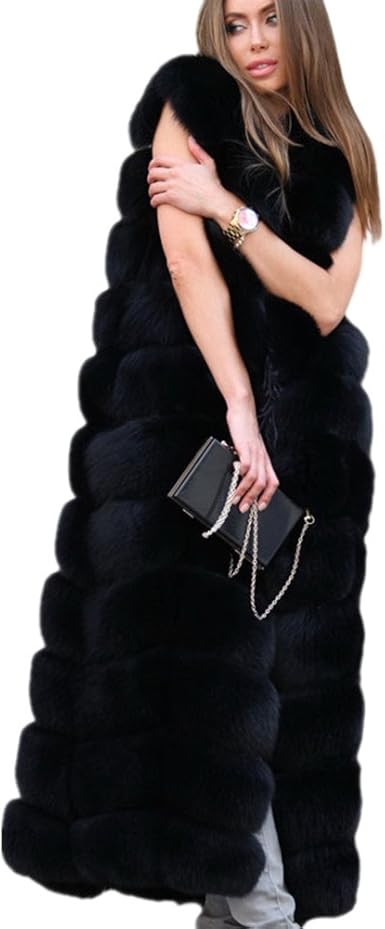 Black long fur vest clearance, Fake Fur Coat Jacket Outwear at Amazon clearance