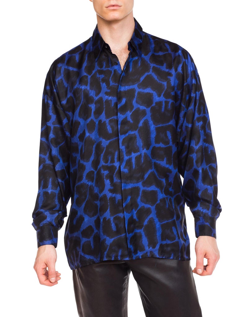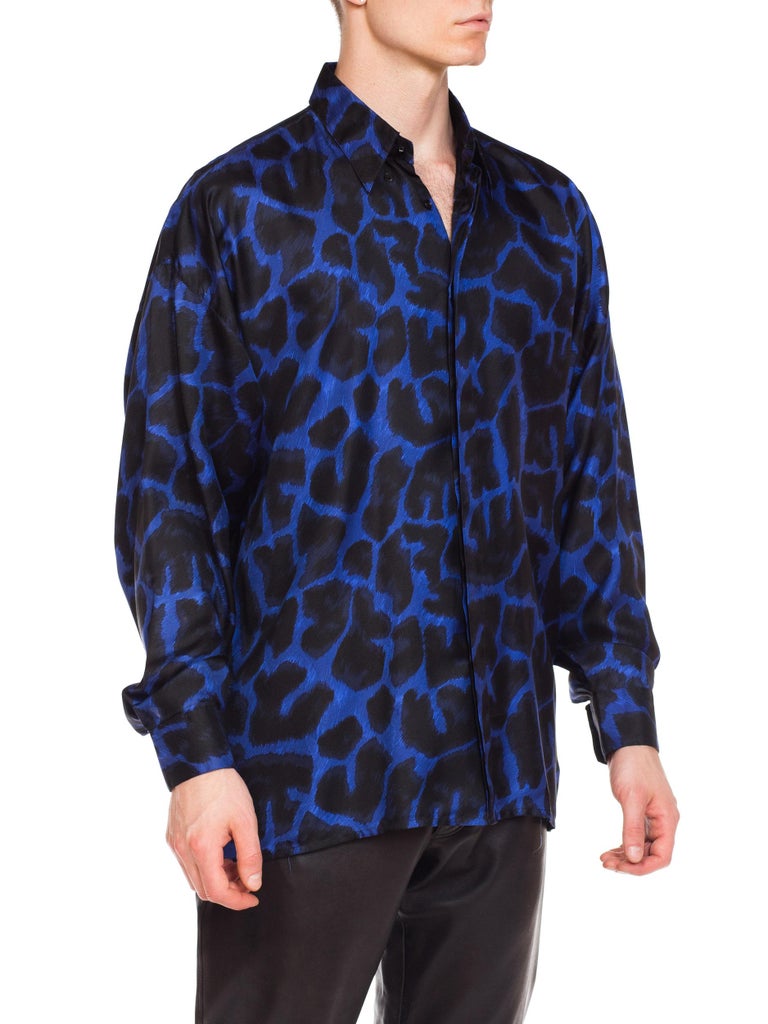 Versace mens leopard shirt clearance, Early 1990s Men's Istante Versace Blue Leopard Silk Shirt at 1stDibs clearance