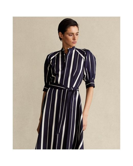 Ralph lauren silk a line dress clearance, Polo Ralph Lauren Striped Silk A-line Dress in Blue | Lyst clearance