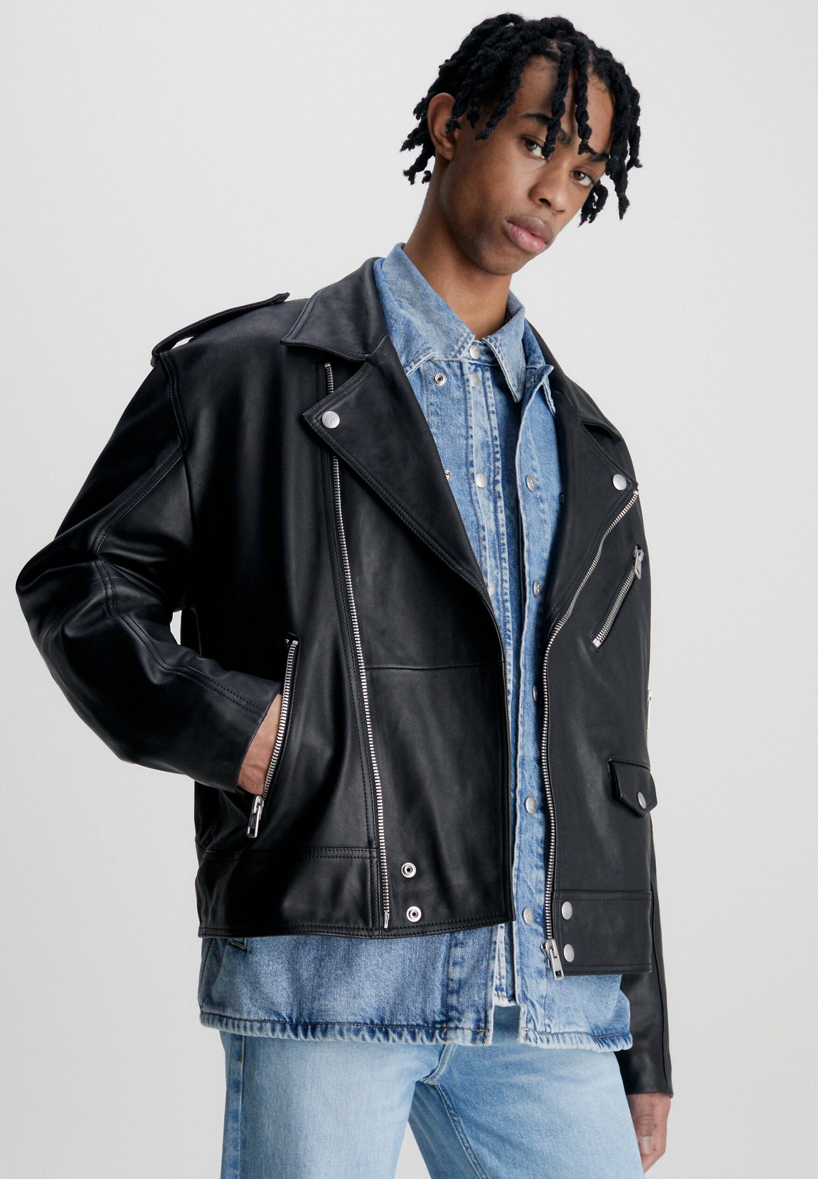 Klein motorcycle jacket clearance, Calvin Klein Jeans LEATHER BIKER JACKET - Leather jacket - ck black/black - Zalando.de clearance