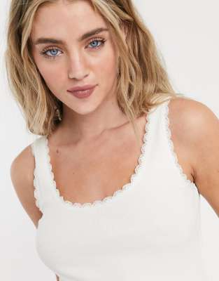 White tank top lace trim clearance, ASOS DESIGN lace trim tank top in white clearance