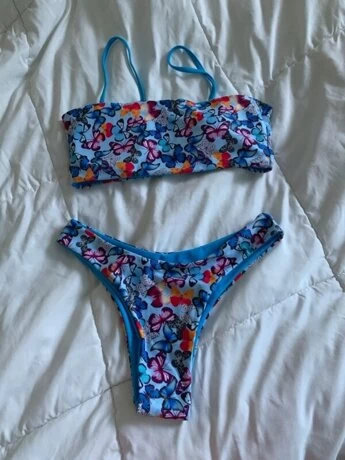 - Allover butterfly print spaghetti strap bikini set sold