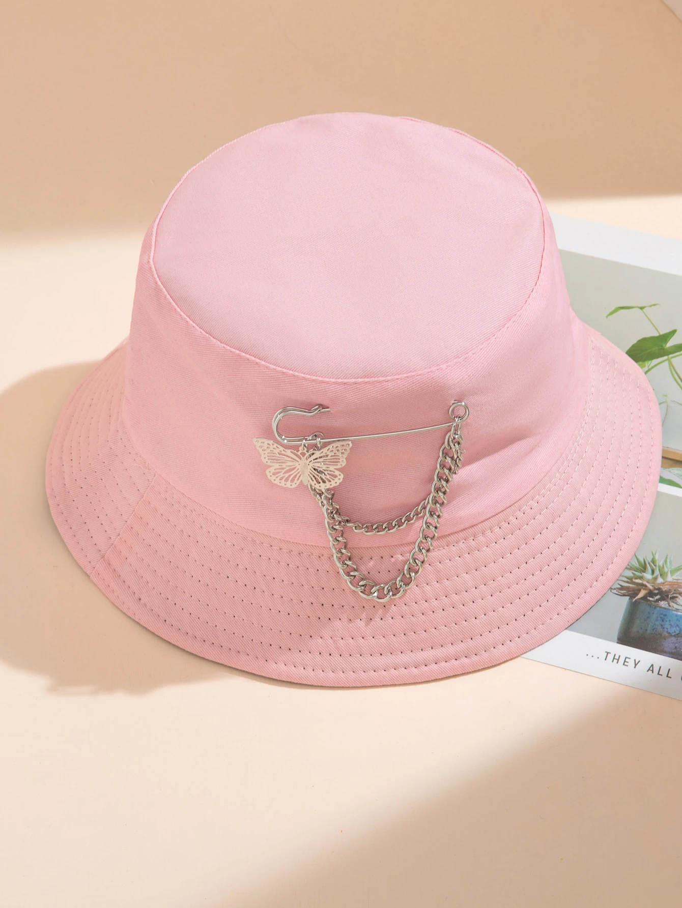 - Cheap Pink butterfly bucket hat