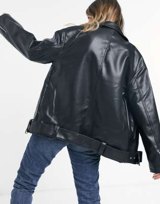 Black leather oversized jacket clearance
