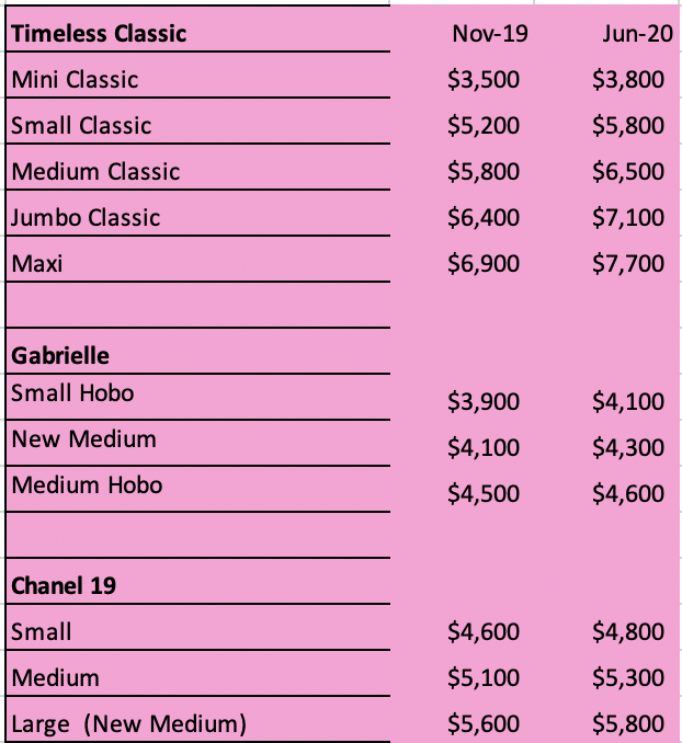 - Chanel raise prices 2020 clearance