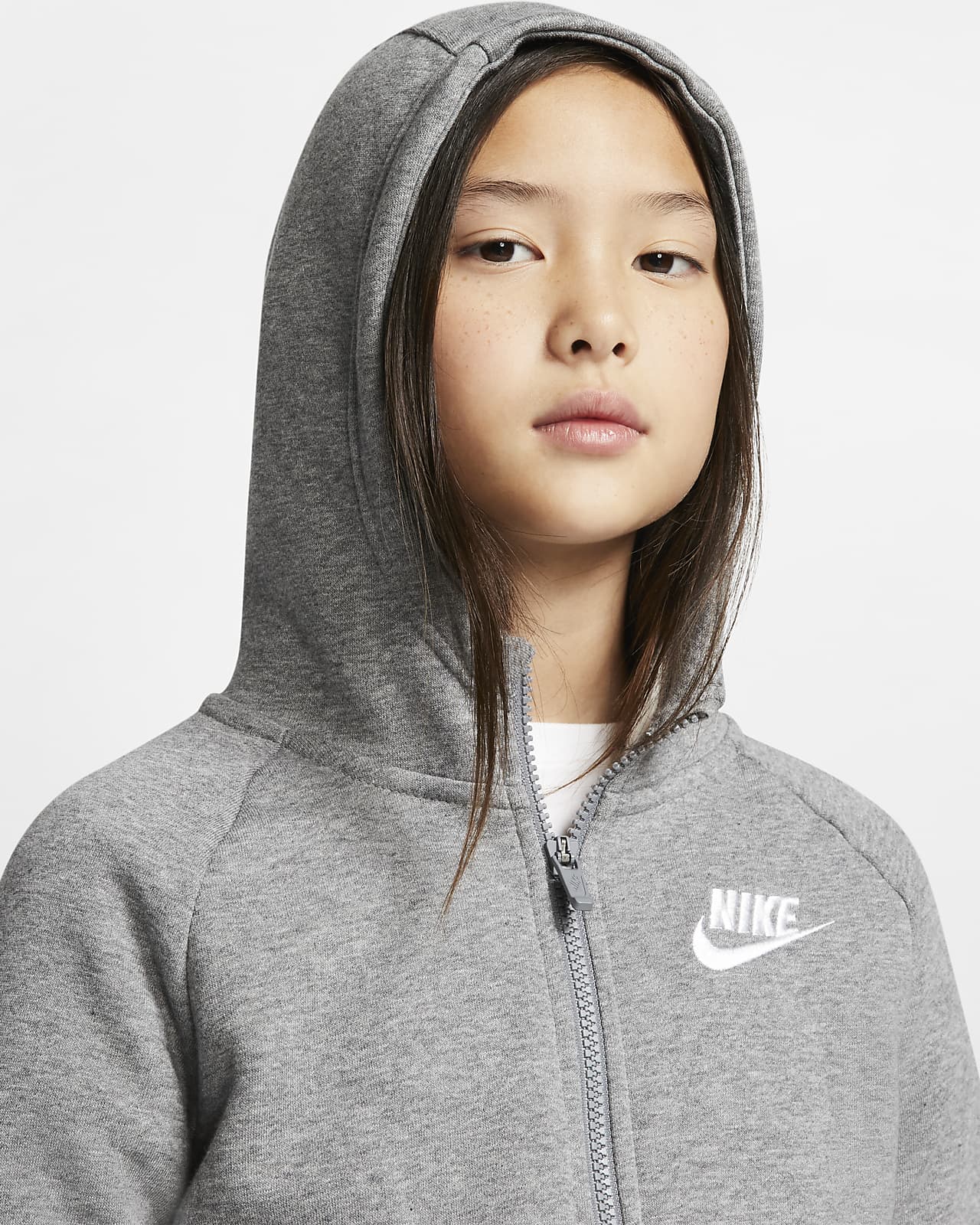 Ragazza con cappuccio clearance, Giovane ragazza in una felpa grigia con clearance