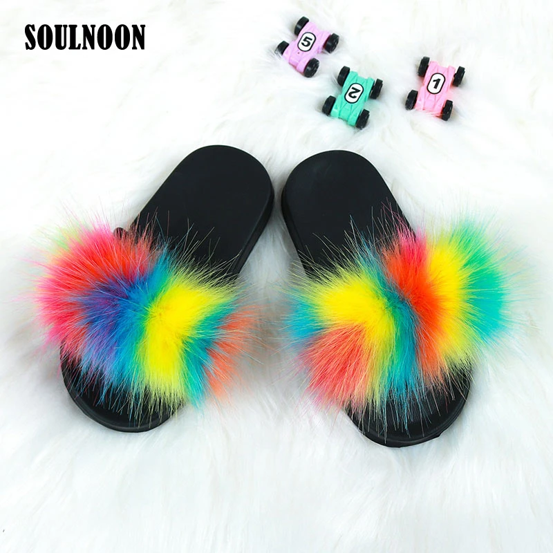 Girls faux fur slides clearance