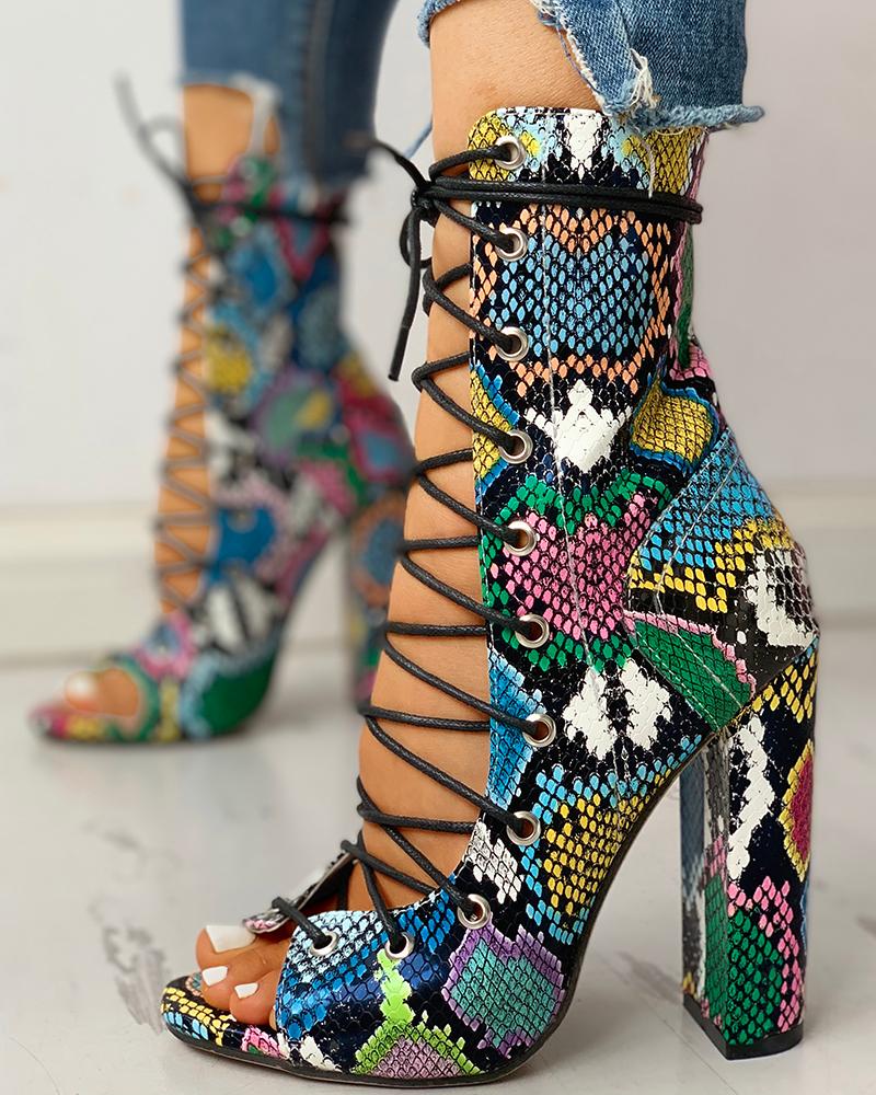 - Shopping Color block lace up chunky heels