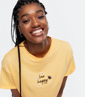 Yellow bee shirt clearance, Pale Yellow Bee Happy Logo T-Shirt clearance