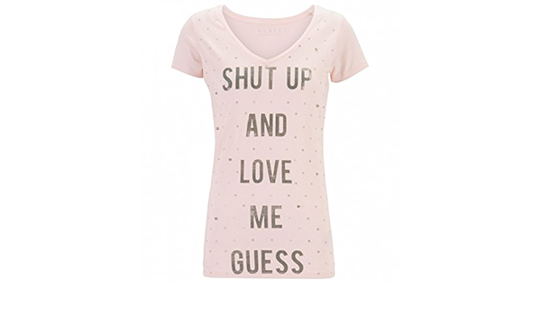 Tee shirt manche courte femme guess clearance, GUESS T-Shirt Shut Up Mauve - Taille clearance