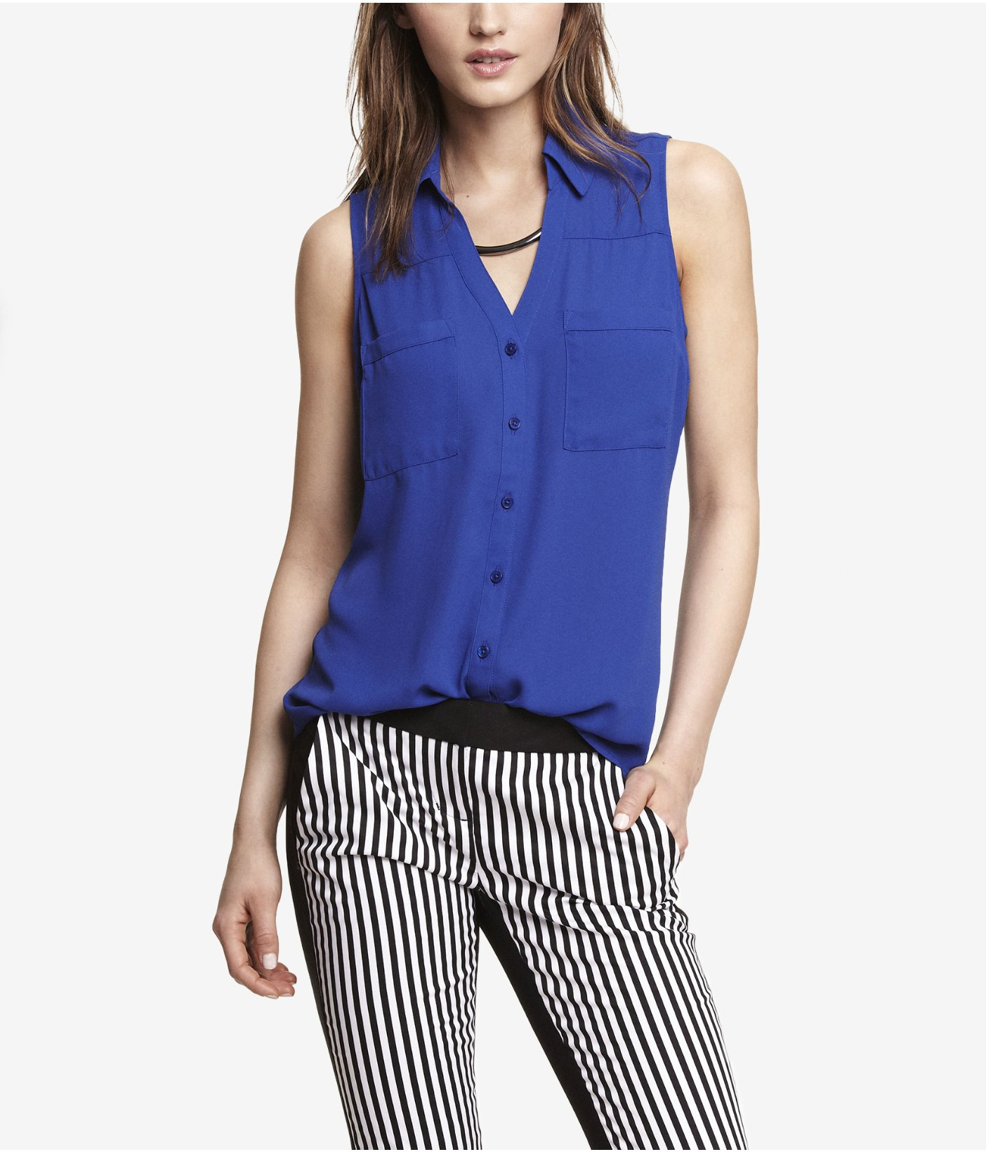 Blue sleeveless shirt clearance