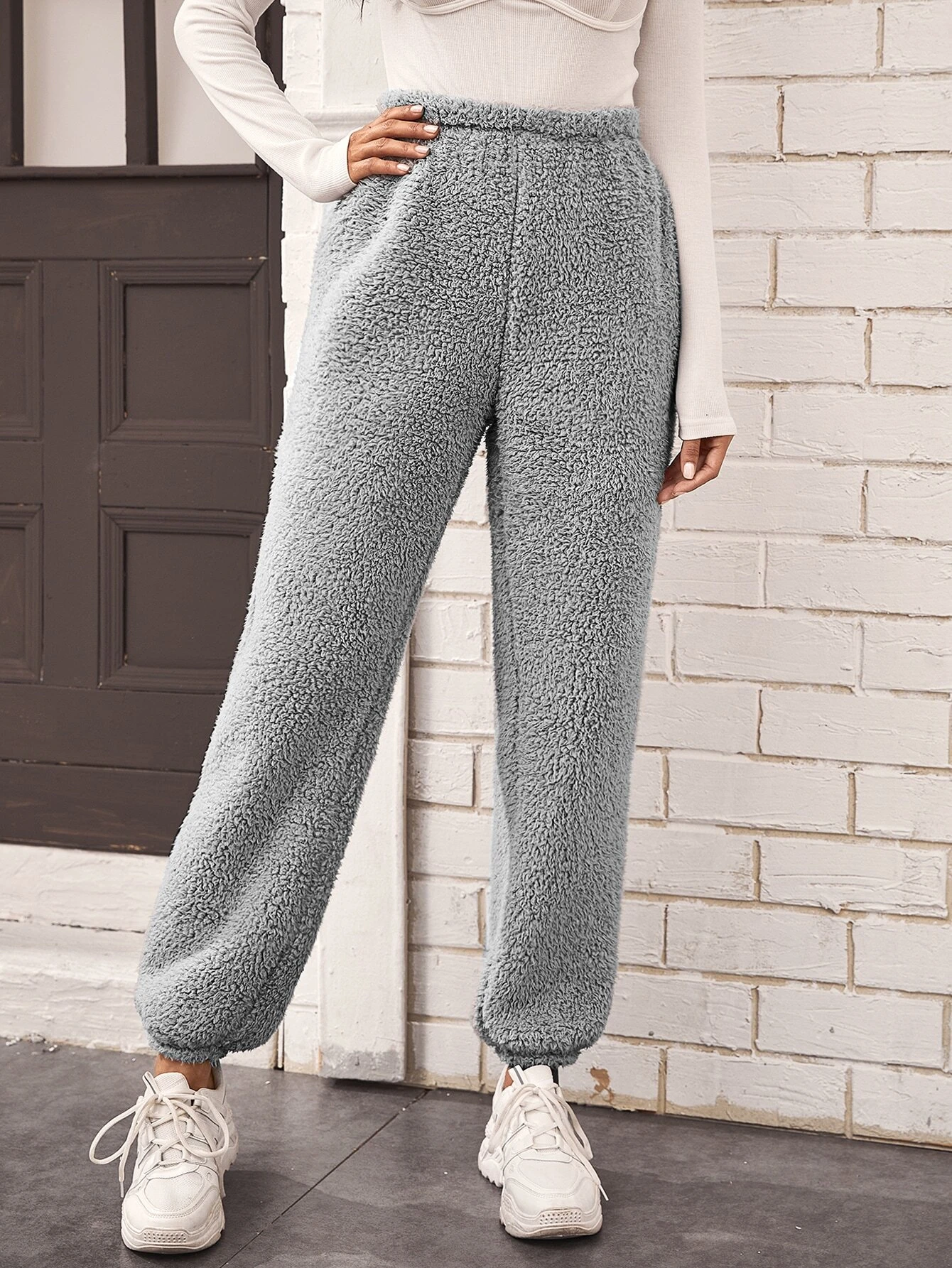 Shein grey pants clearance, SHEIN Solid Teddy Trousers | SHEIN UK clearance