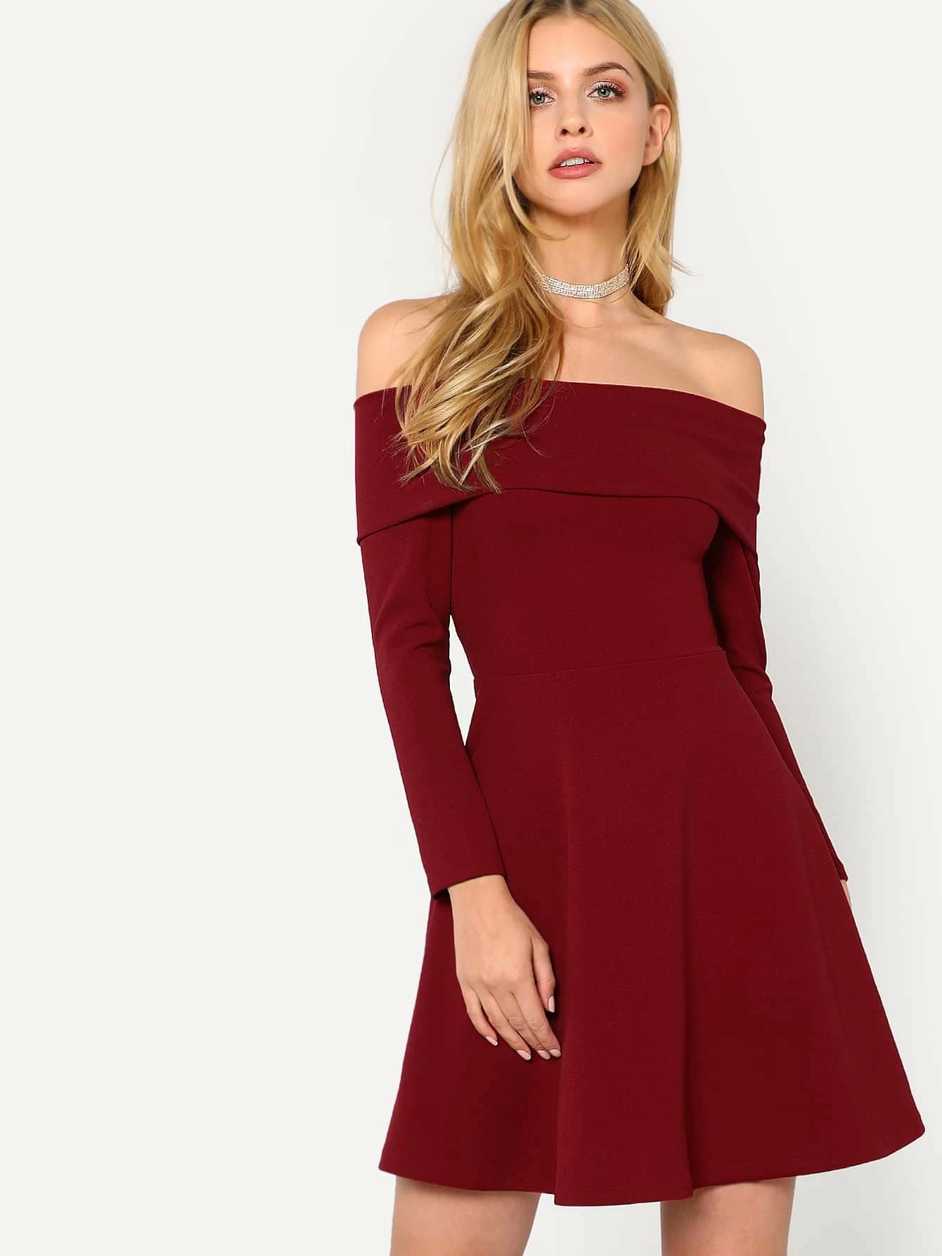 Bardot fit and flare dress clearance, Flare Fold Over Bardot Dress | SHEIN clearance