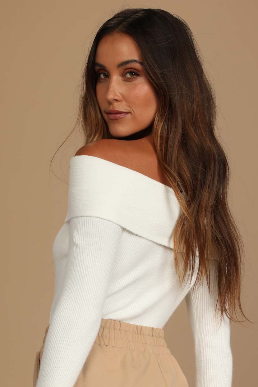 White off the shoulder crop sweater clearance, White Sweater - Off-the-Shoulder Sweater - Cropped Sweater - Lulus clearance