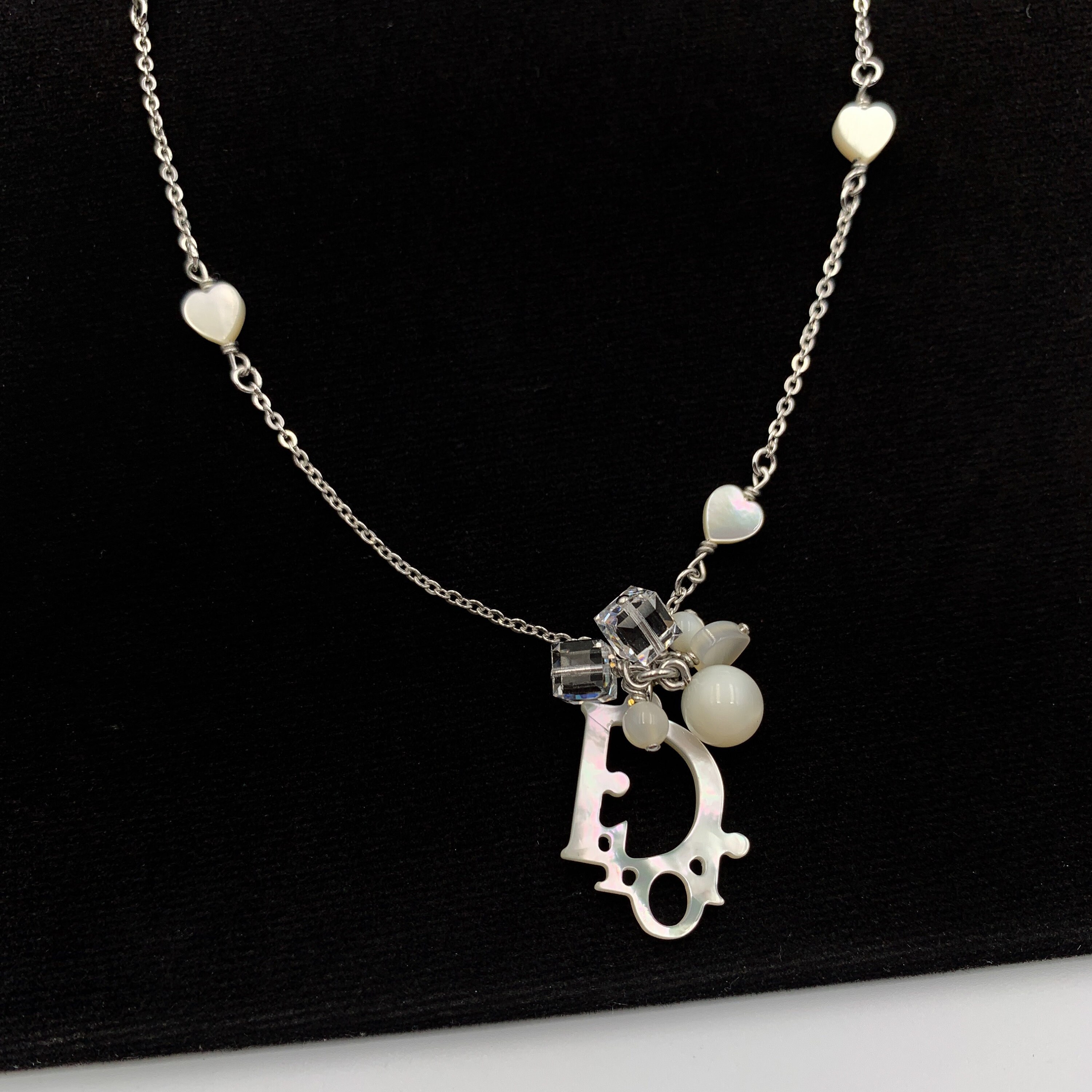 Dior necklace charm clearance, CHRISTIAN DIOR LOGO CHARM RHINESTONE SILVER NECKLACE – RDB clearance