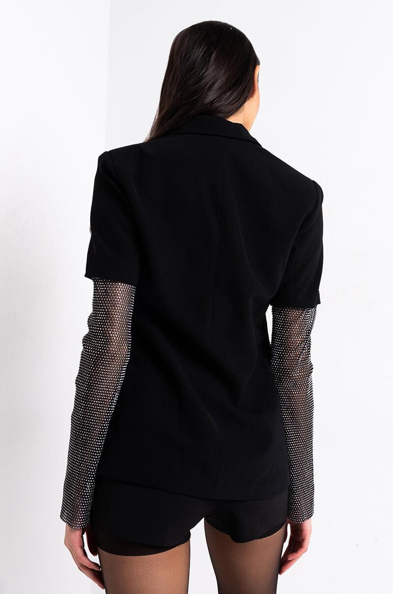 - Blazer with rhinestone sleeves