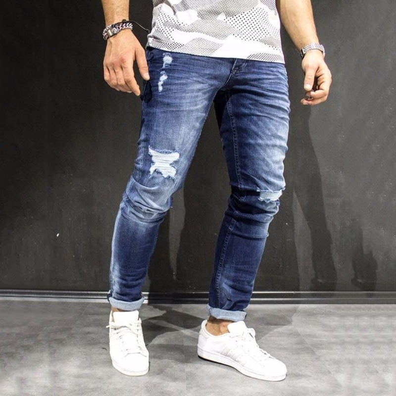 Jeans scratch pant clearance, Men Stretchy Ripped Skinny Jeans Biker clearance