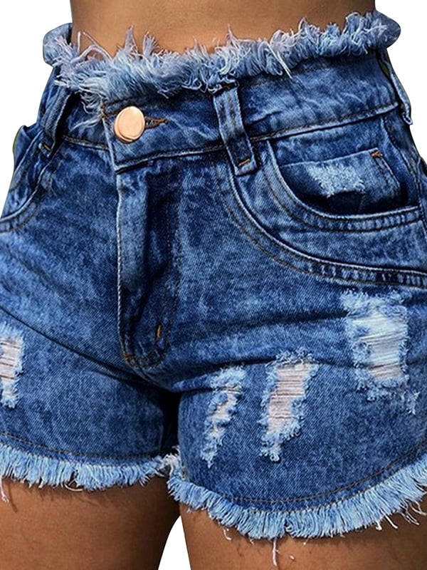 - Blue denim frayed shorts free shipping