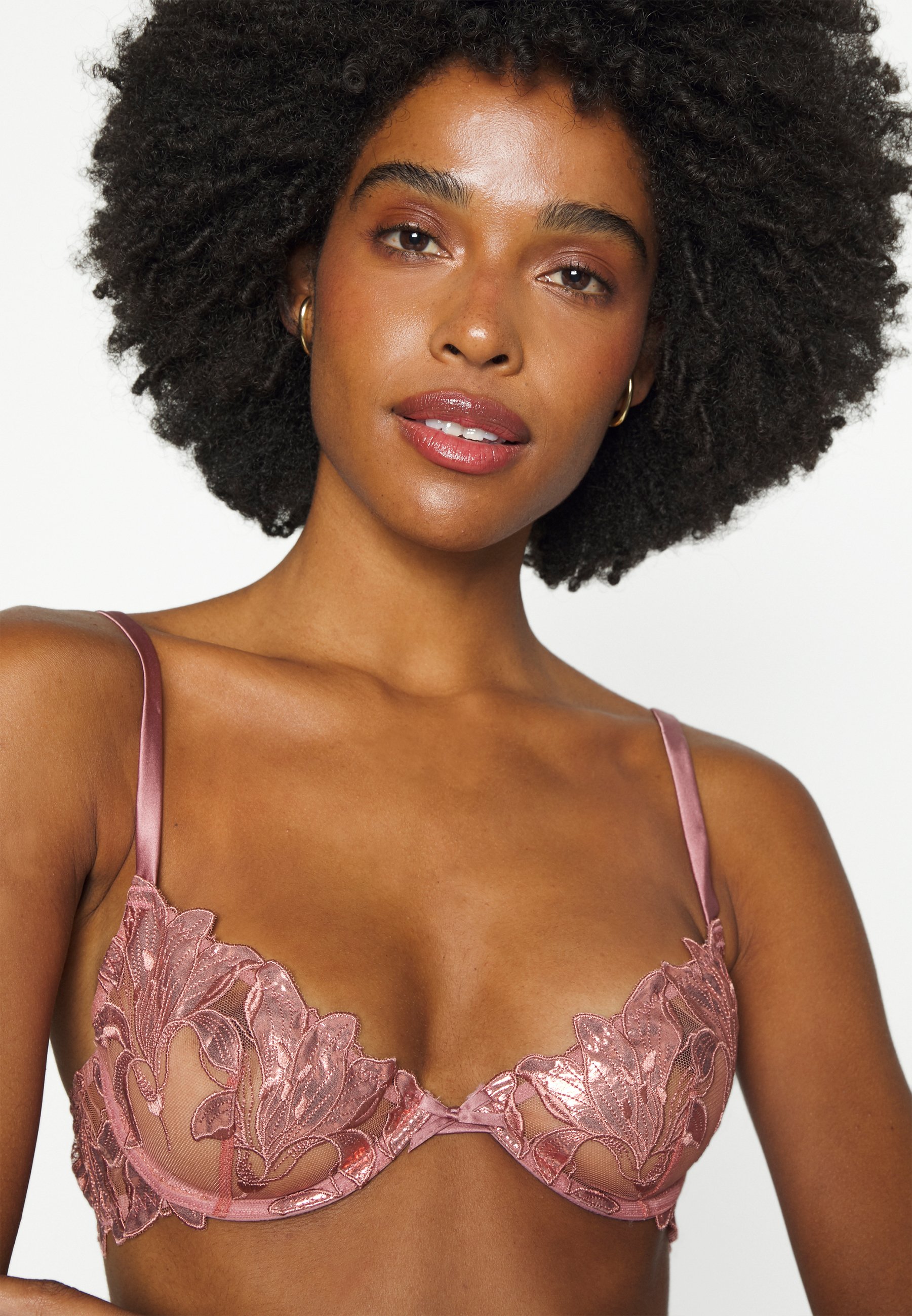 Rose gold bra clearance, Fleur DU Mal Pink Foil Lily Embroidery Demi Bra clearance