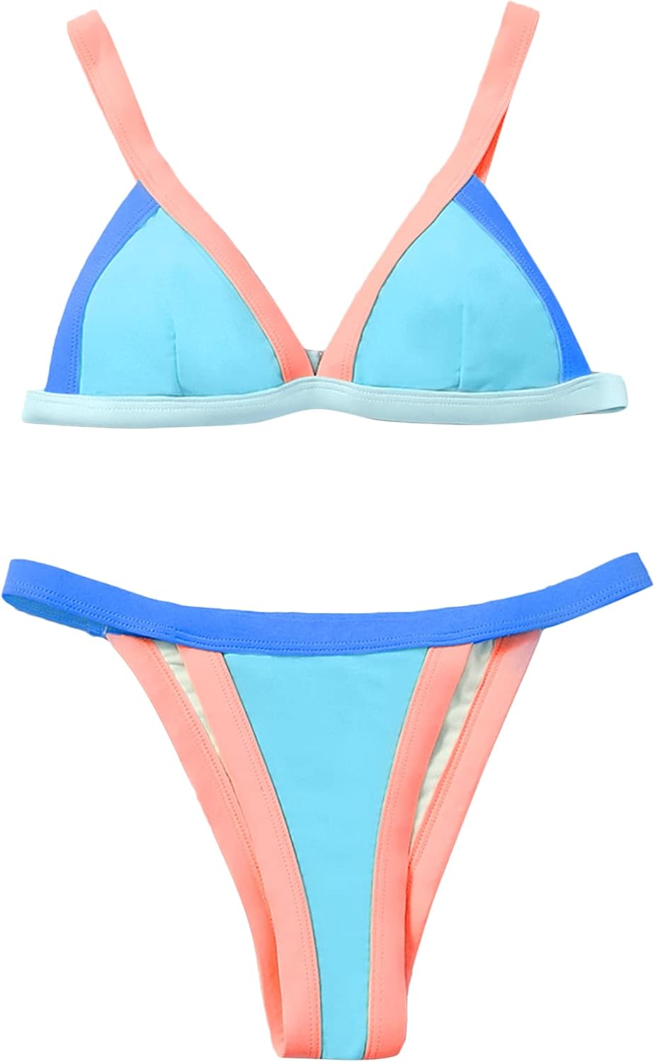 Color block bikini clearance, Orange Pink Color Block Triangle Bikini clearance