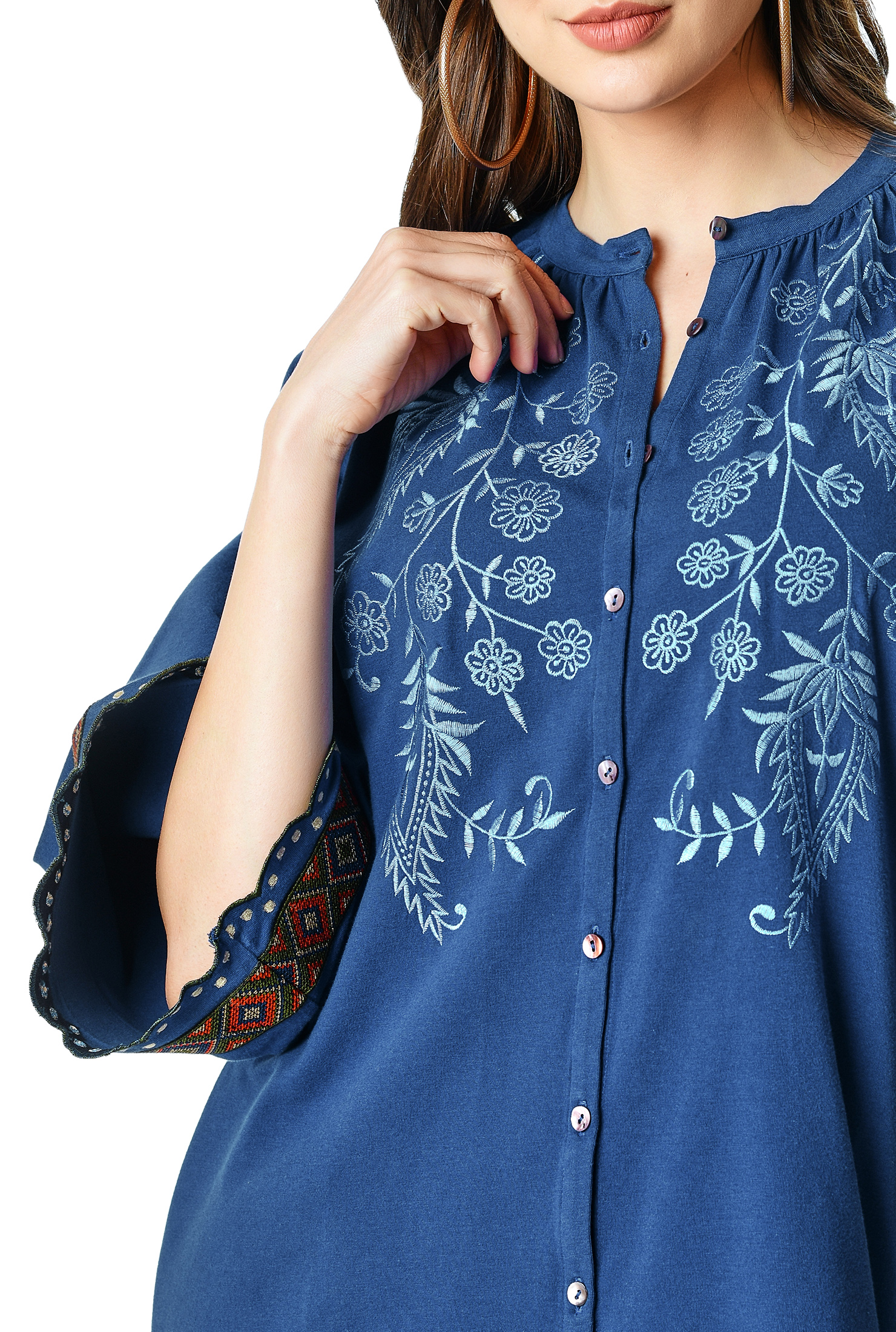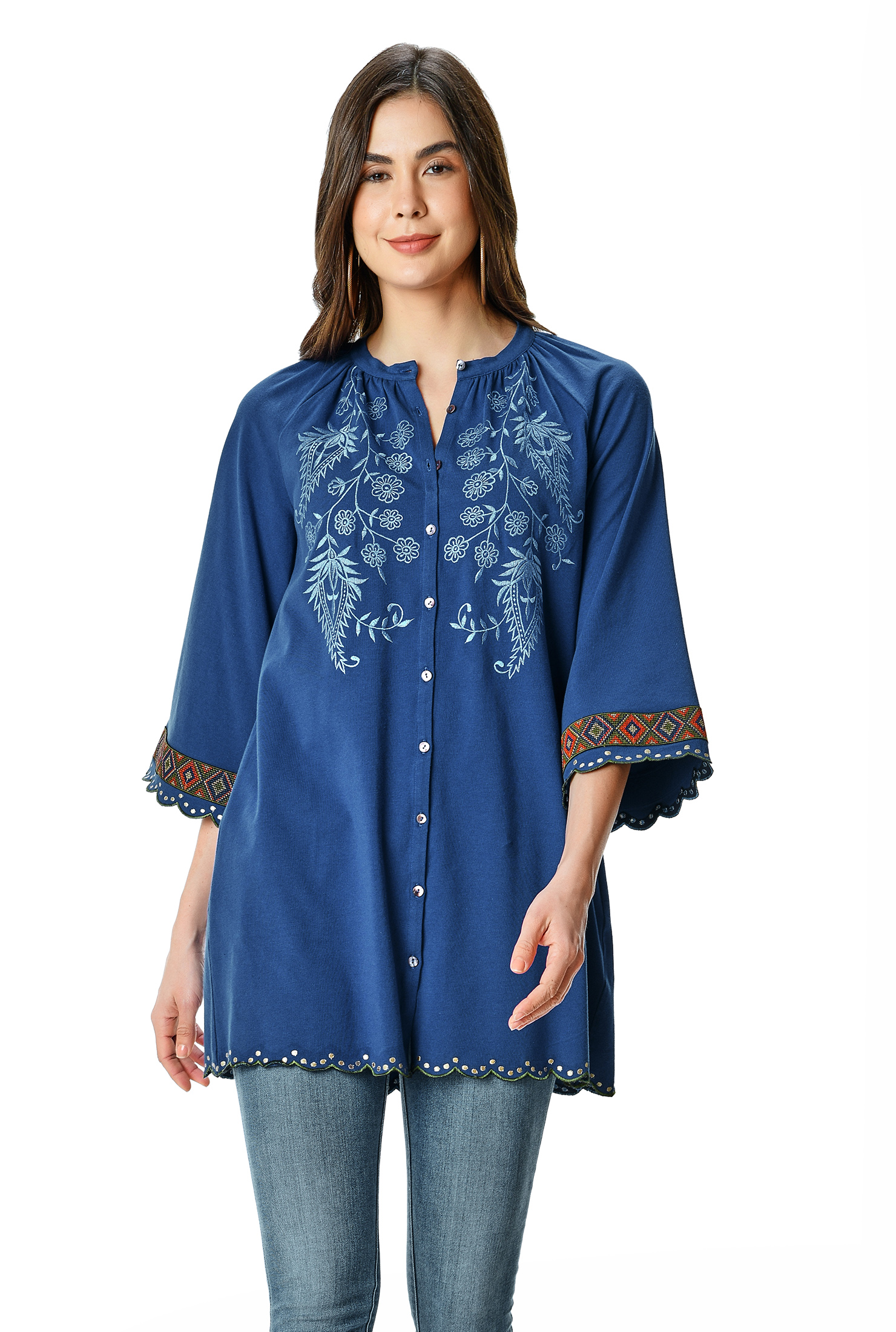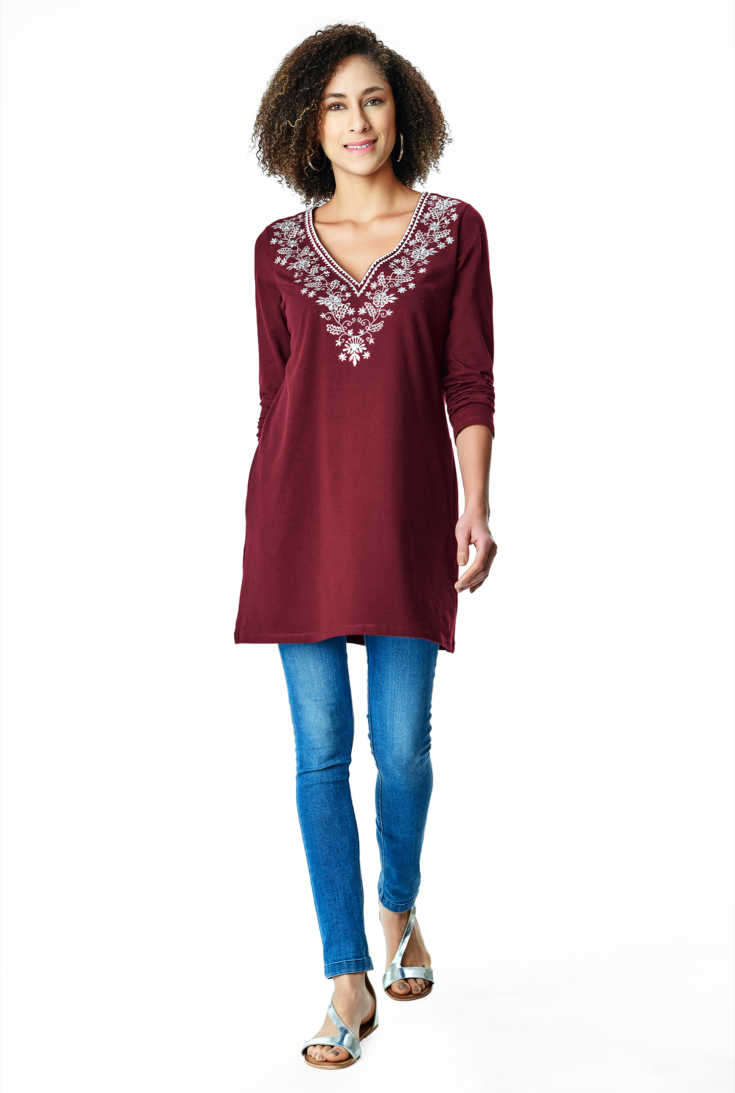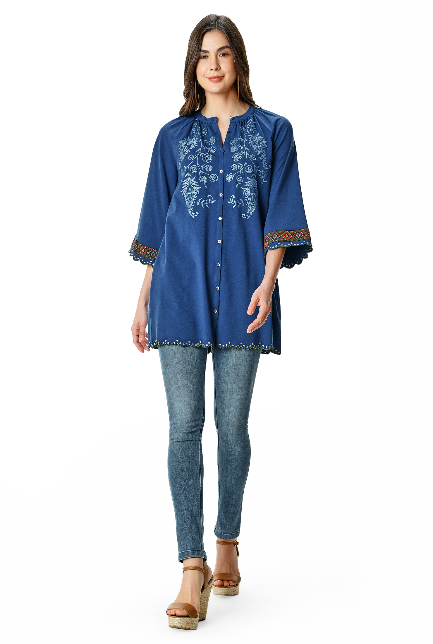Floral jersey tunic clearance, Floral embroidery cotton jersey tunic clearance