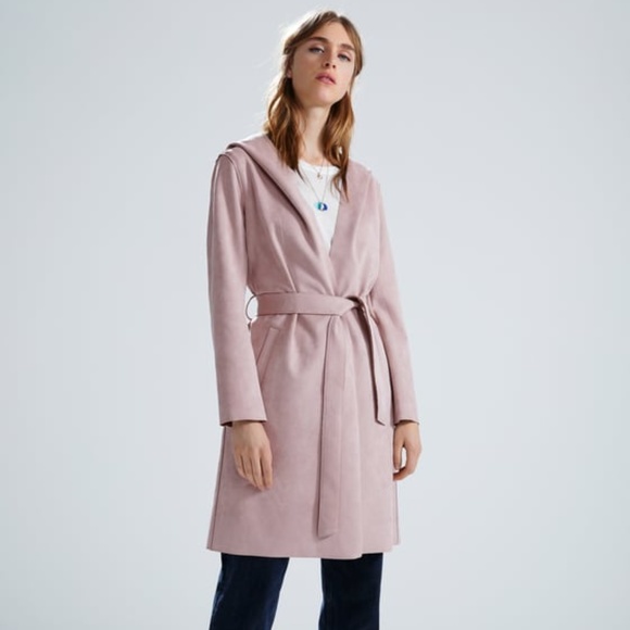 - Zara pink faux suede coat outlet