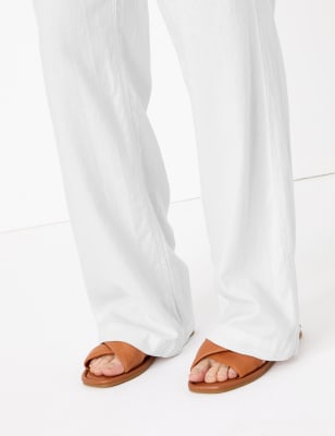 Ladies white linen trousers uk clearance, CURVE Linen Wide Leg Trousers | M\u0026S clearance