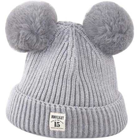 Boys grey bobble hat clearance, Personalised Girls Boys Kids Double Pom clearance