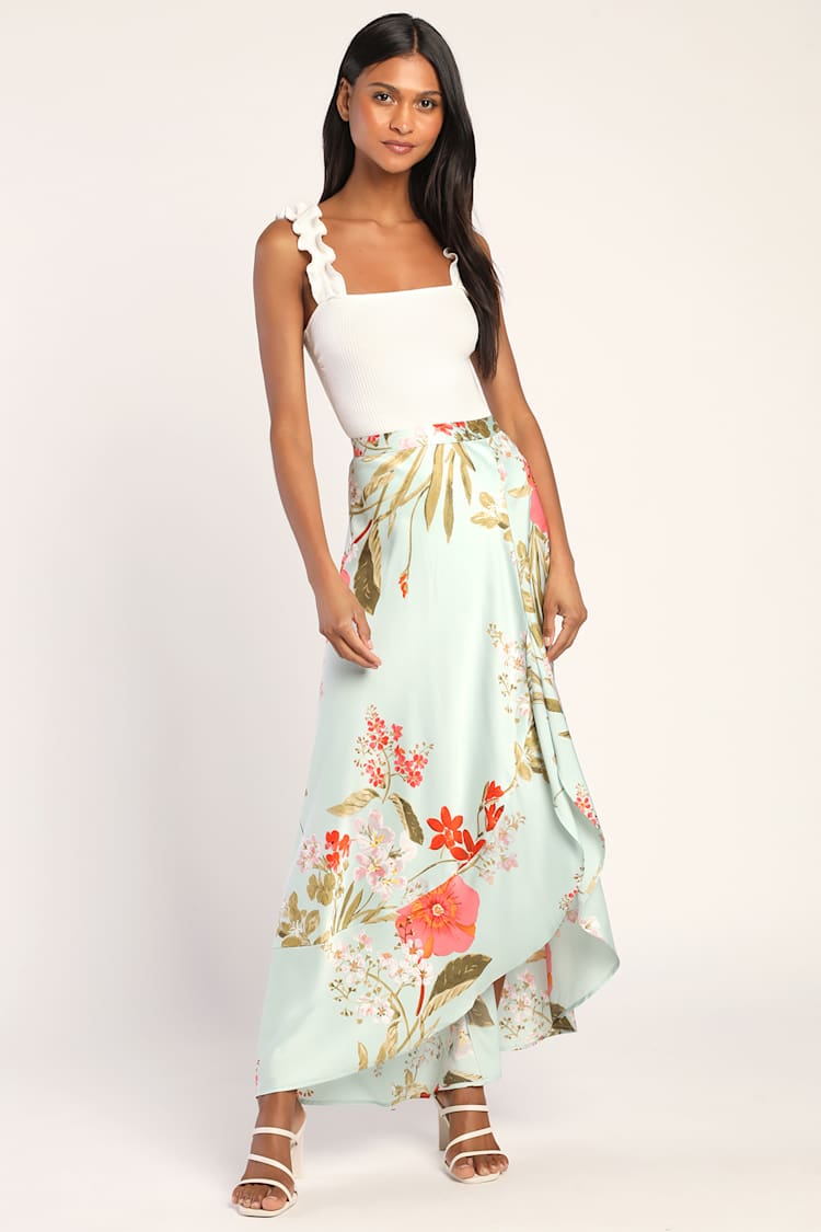 Lulus maxi skirt clearance, Emerald Green Floral Print Skirt - Satin Skirt - Maxi Skirt - Lulus clearance