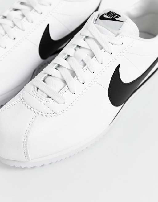 - Nike cortez leather trainers in white with black swoosh clearance