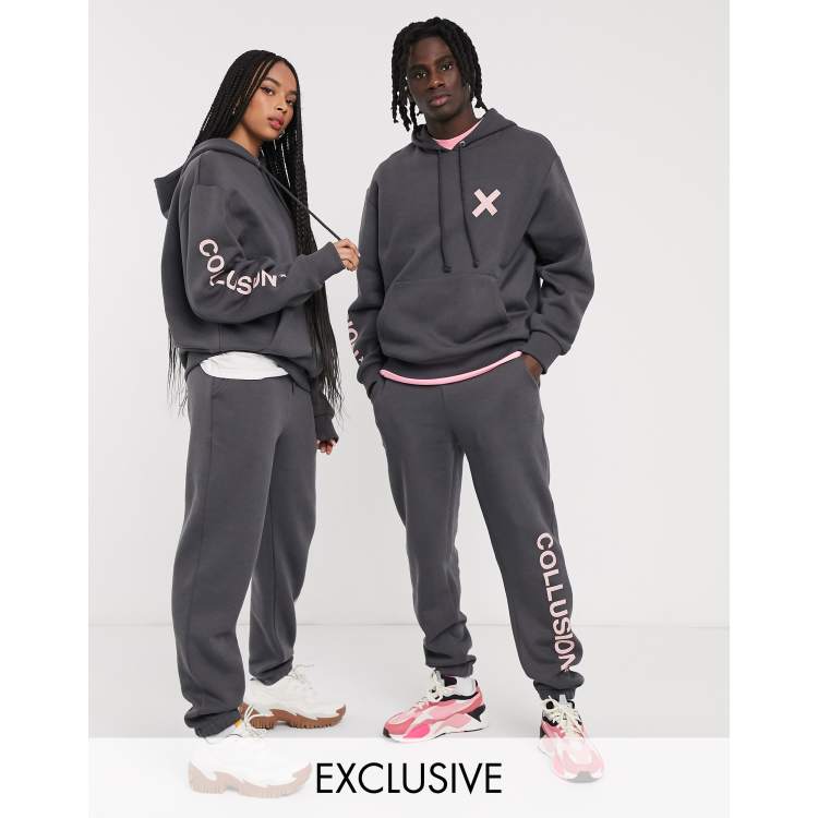 Collusion grey sweatshirt clearance, COLLUSION Unisex logo hoodie in dark grey | ASOS clearance