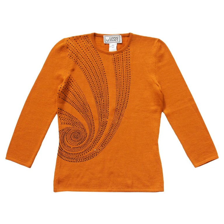 Versace pullover sweater clearance, Gianni Versace Crystal Embellished 100% Wool Sweater Pullover Top It. 40 - US Sm For Sale at clearance