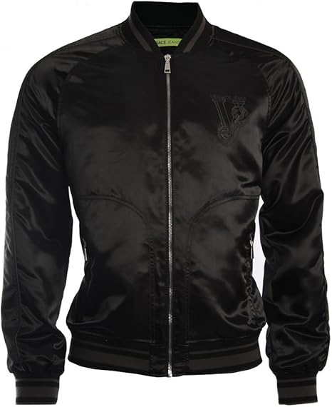 Versace jacket black and white clearance, Versace C1GFA9B2 High Shine Bomber Jacket in Black BLACK XLARGE at Amazon Menâs Clothing store clearance
