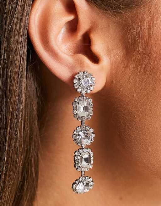 Chanel drop & linear earrings clearance, ASOS DESIGN drop earrings in mixed crystal drench linear drop in silver tone | ASOS clearance