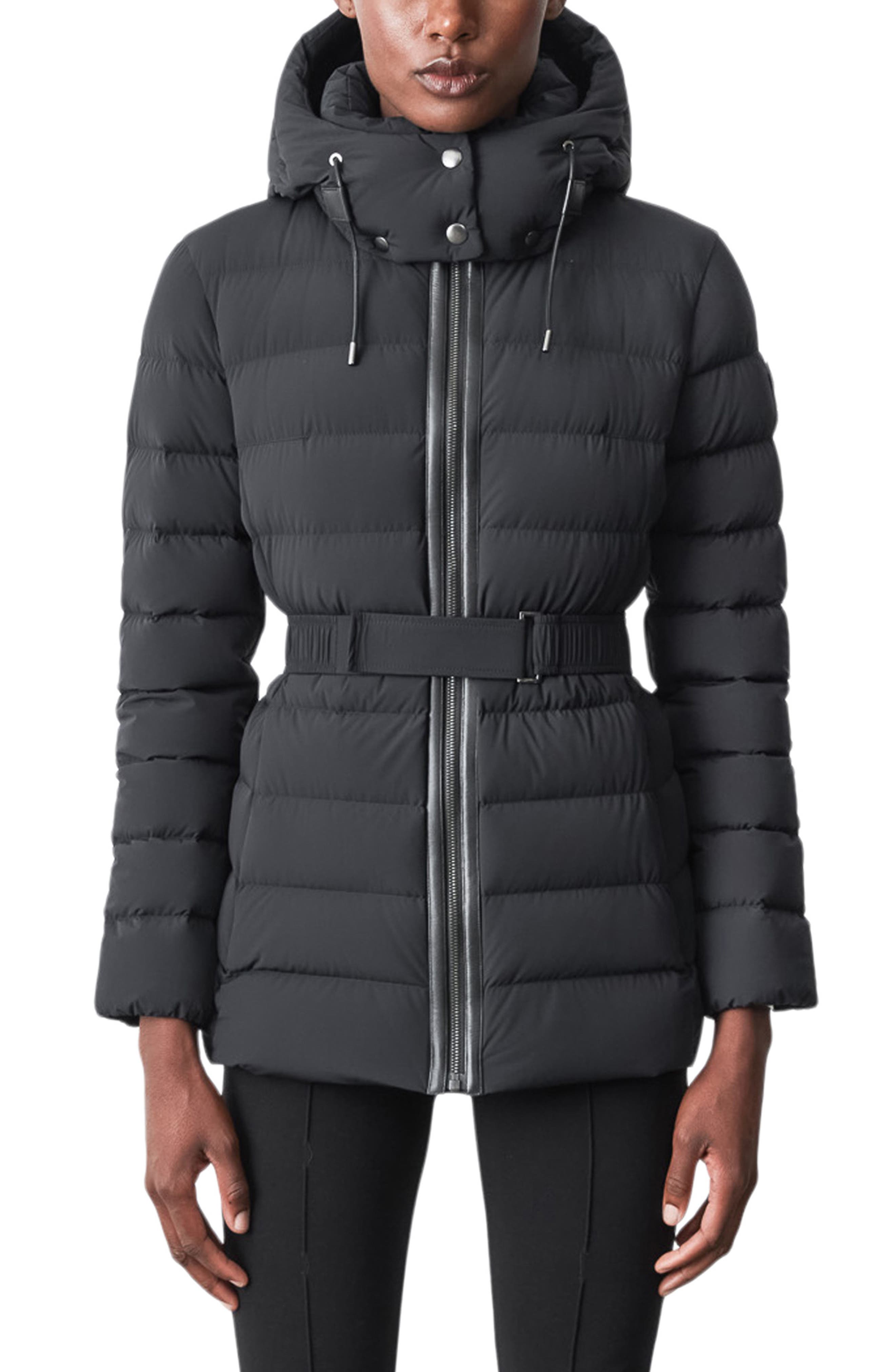 - Belted down puffer coat sale