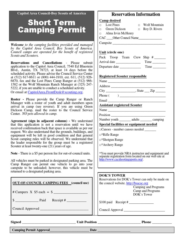 - Backcountry camping permit outlet
