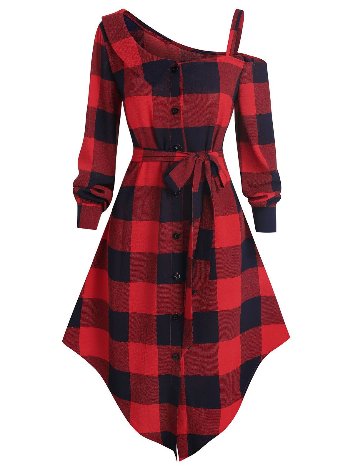 Plaid asymmetrical dress clearance, Skew Neck Plaid Asymmetric Dress [59 clearance