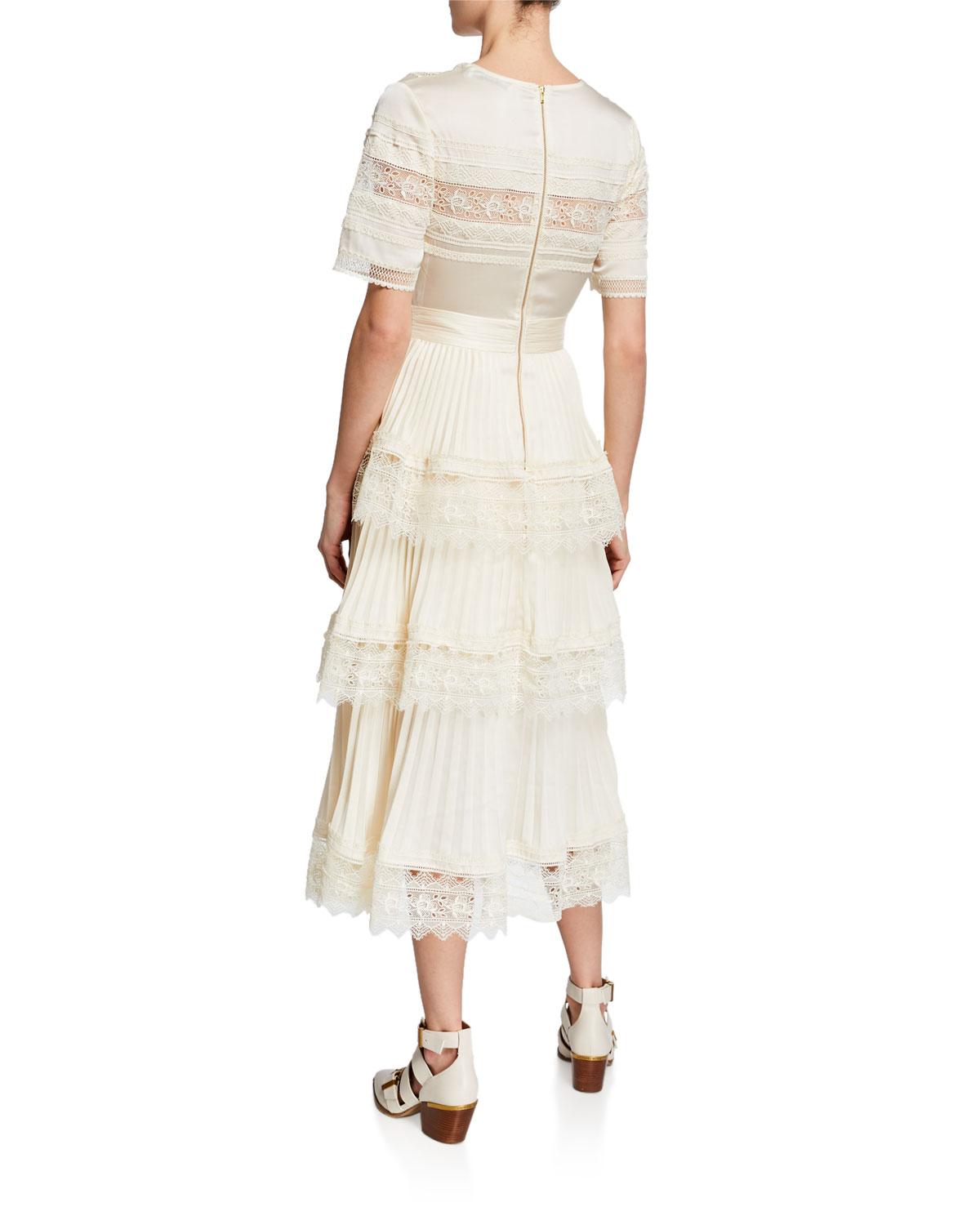 - Cream chiffon tiered midi dress outlet