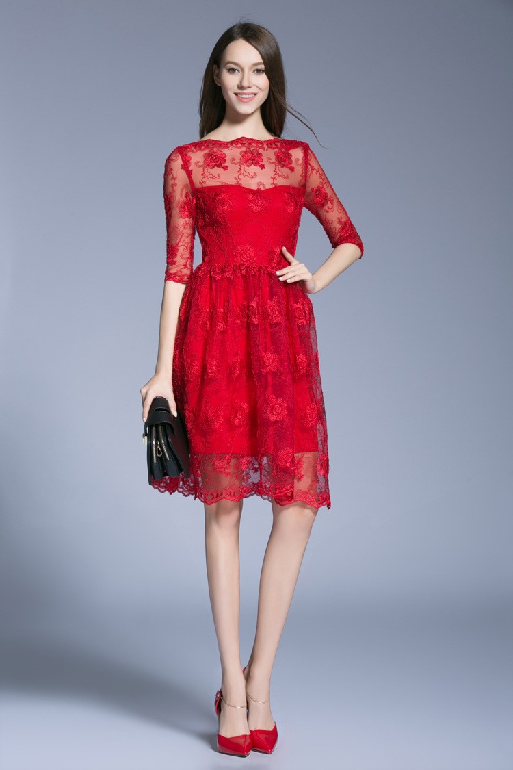 - Red lace cocktail dress with sleeves