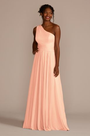 F19932 davids bridal clearance, Mesh One-Shoulder Bridesmaid Dress with clearance