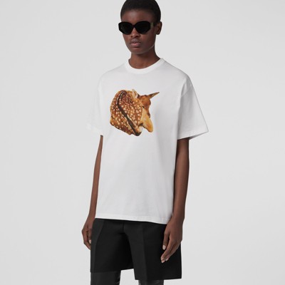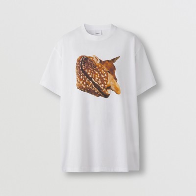 Burberry deer shirt clearance, Deer Print Cotton Oversized T-shirt in clearance