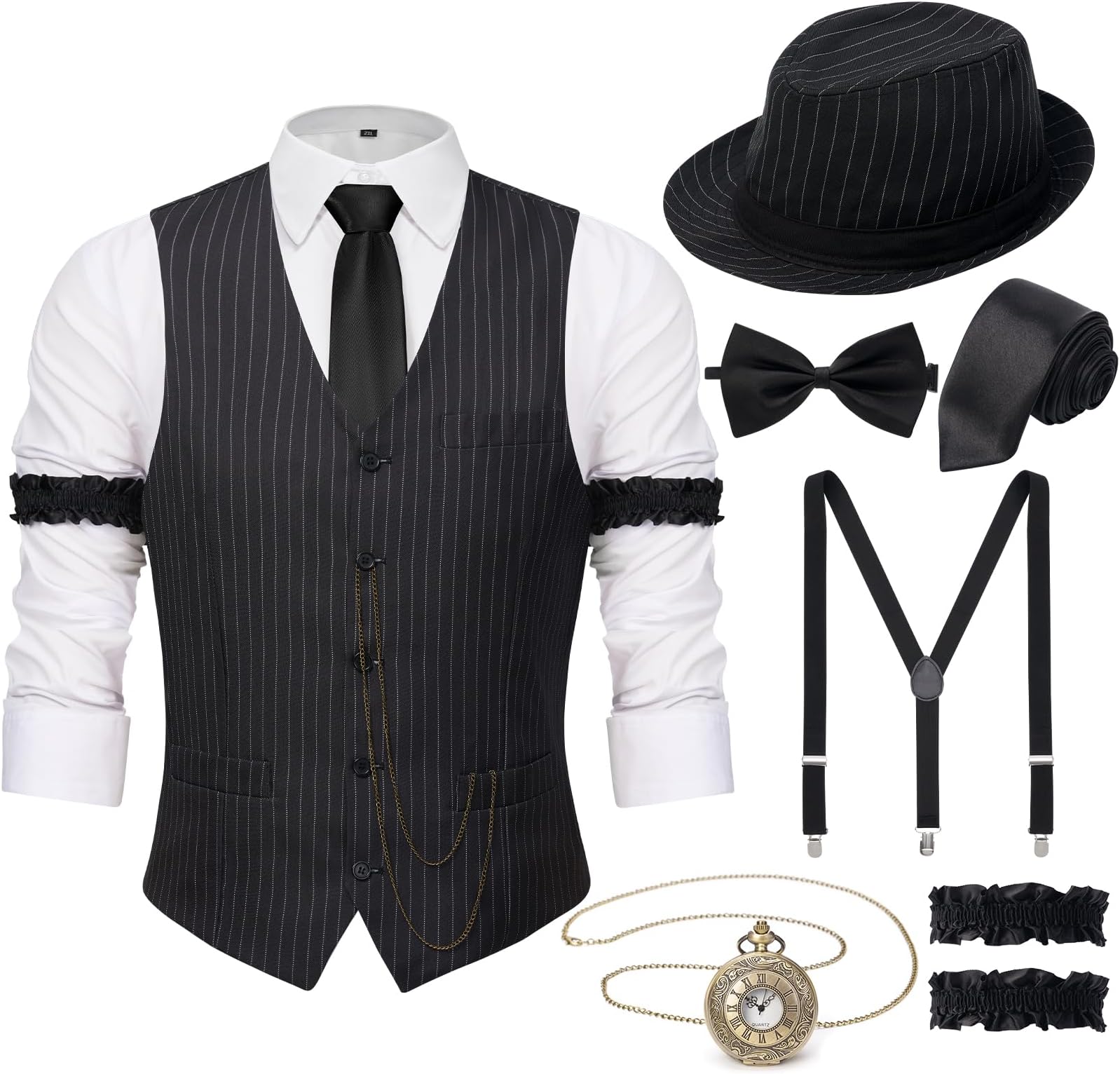 1920 dress up male clearance, 1920s Mens Costume Vest Hat Pocket Watch Accessories Set Adult Party Cosplay clearance