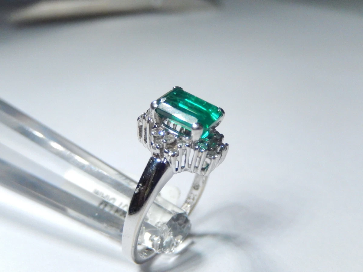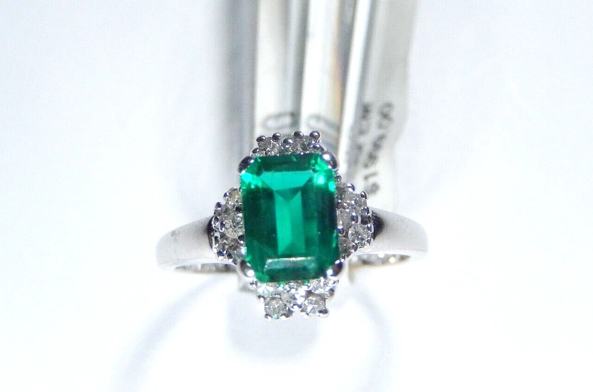 Lab created emerald and diamond 14kt white gold ring clearance, REAL 14KT White Gold Lab Grown Emerald Ring with Diamond Halo Setting Rhodium | eBay clearance