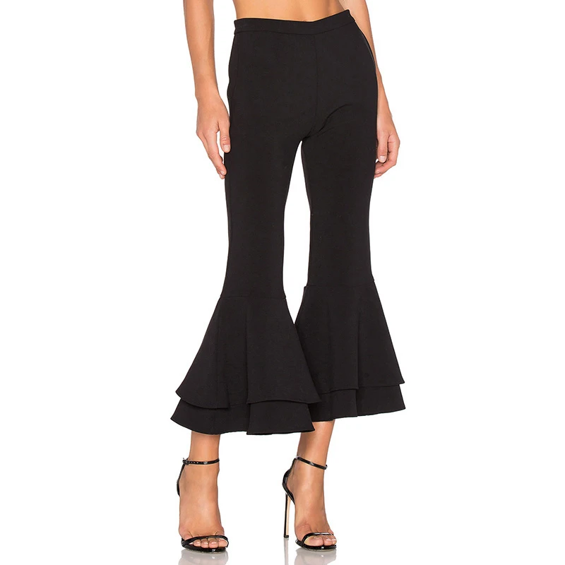 Ruffle bottom capri pants clearance, Black High Waisted Fitted Ruffle Trim clearance
