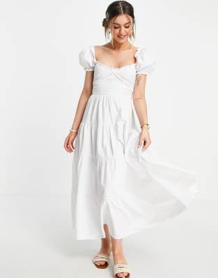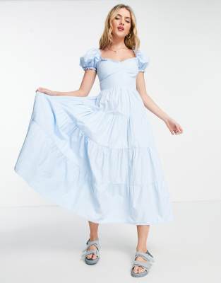 Asos stradivarius dress clearance, Stradivarius milkmaid poplin dress with clearance