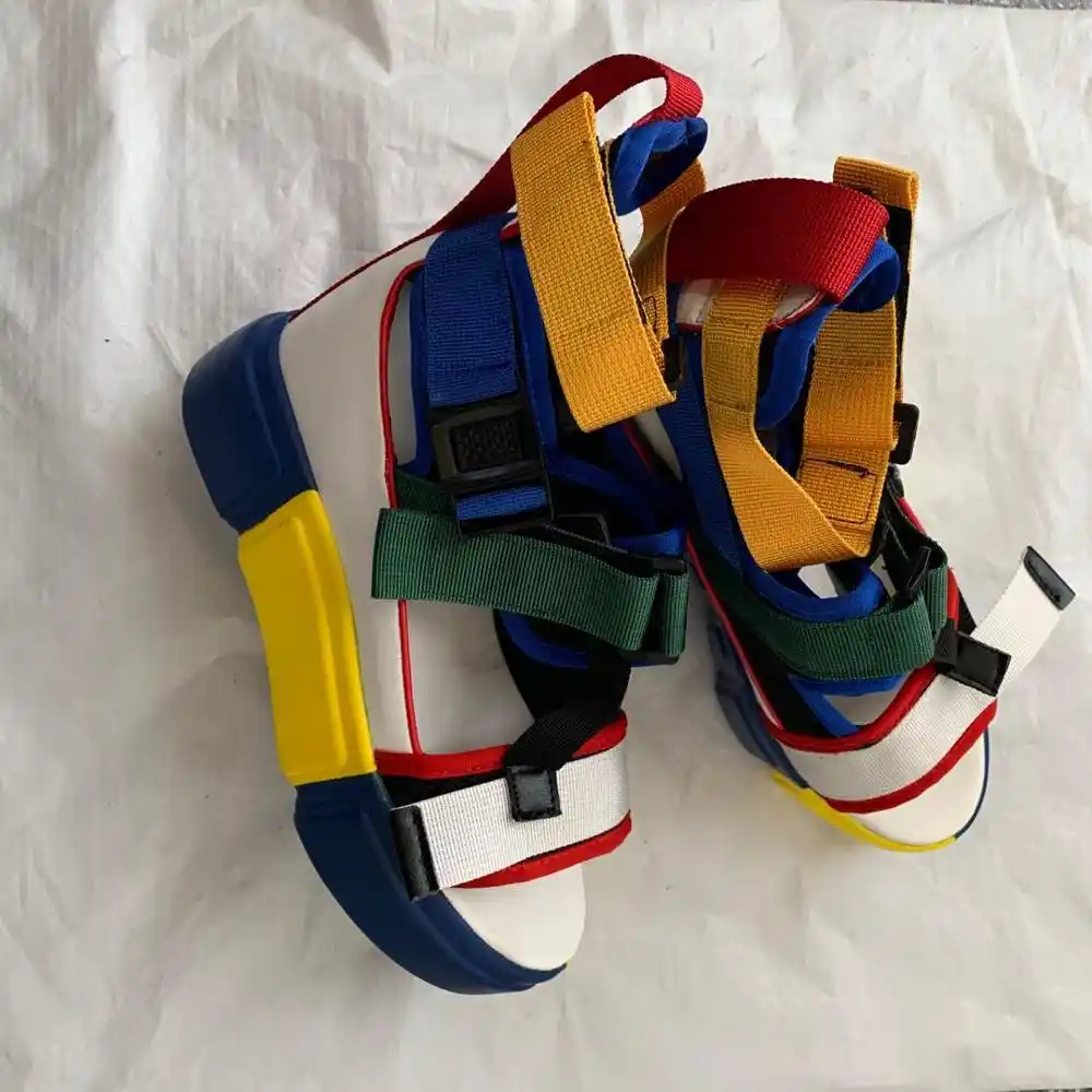 - Platform open toe velcro color block sandals sale