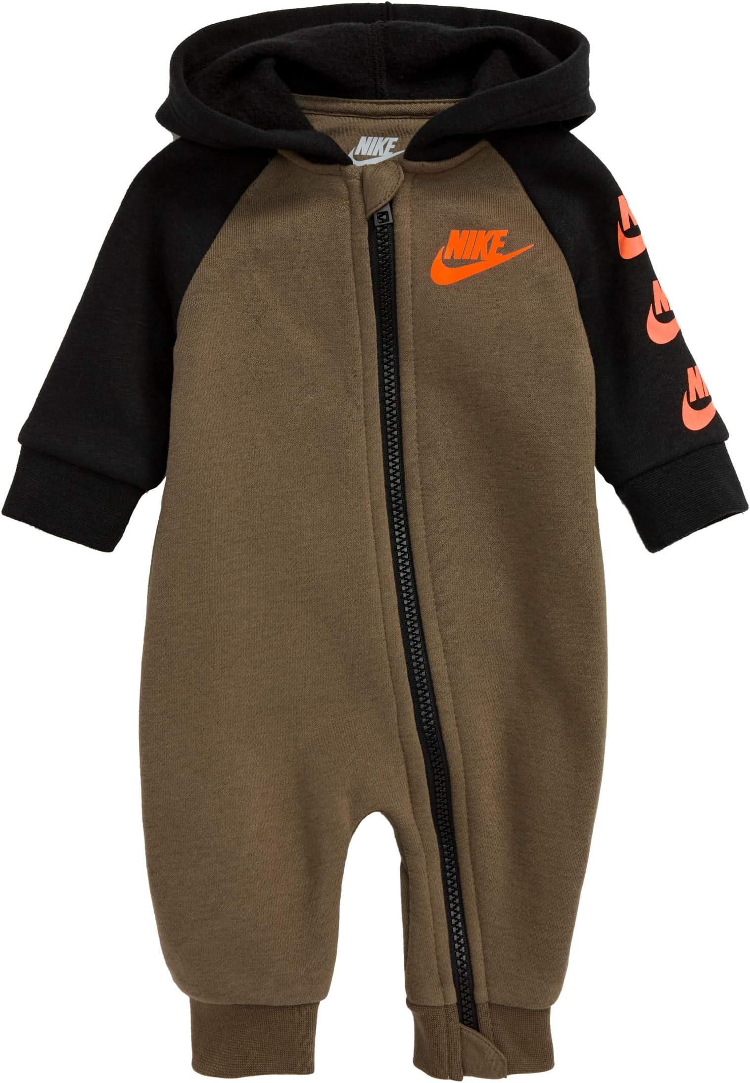 Survette nike bebe clearance, Nike Baby`s Futura Long Sleeve Full Zip Hooded Coverall (Medium Olive(56F869-E6F)/Black, 6 Months) clearance