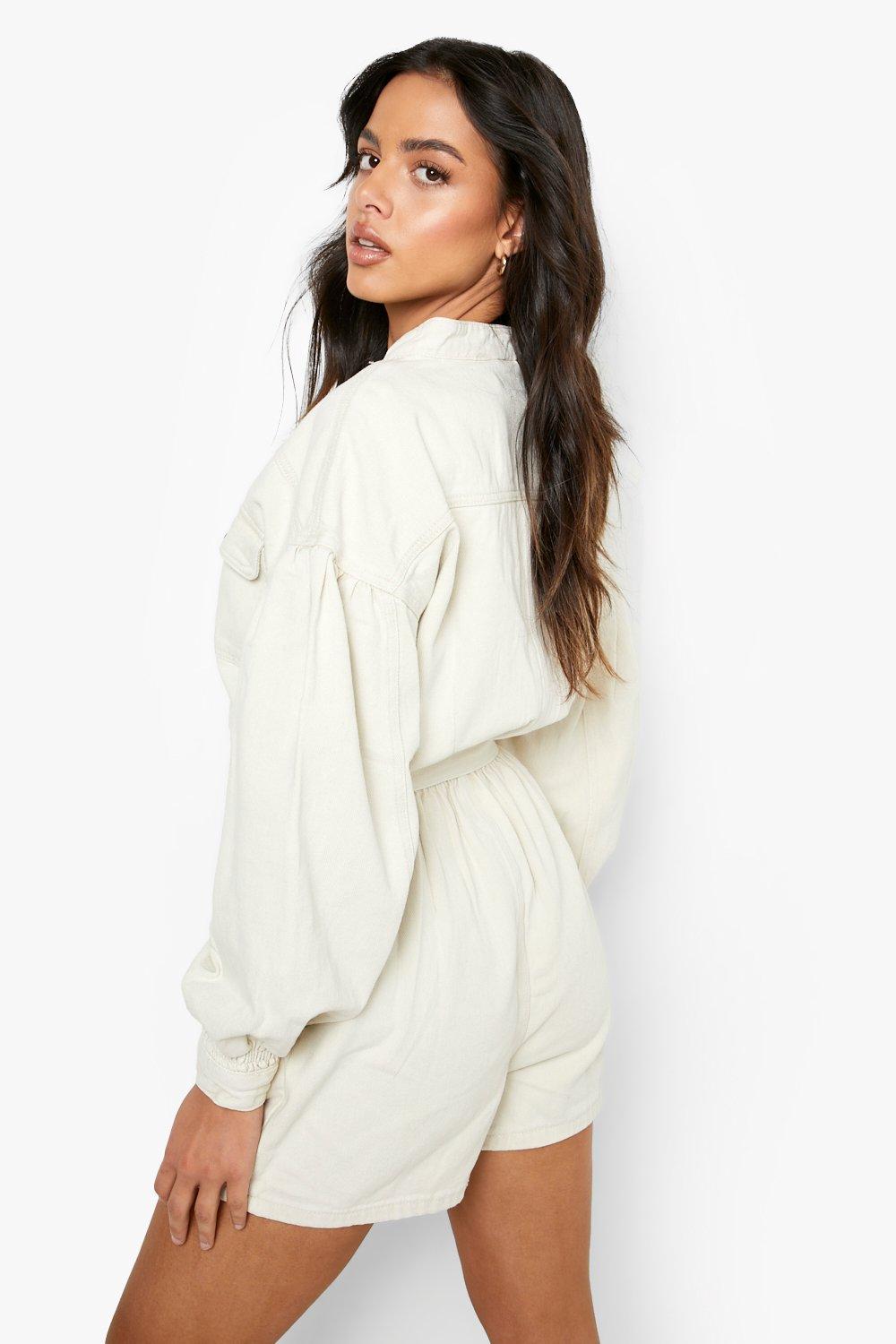 Stone denim playsuit clearance, Utility Pocket Denim Playsuit | Boohoo clearance
