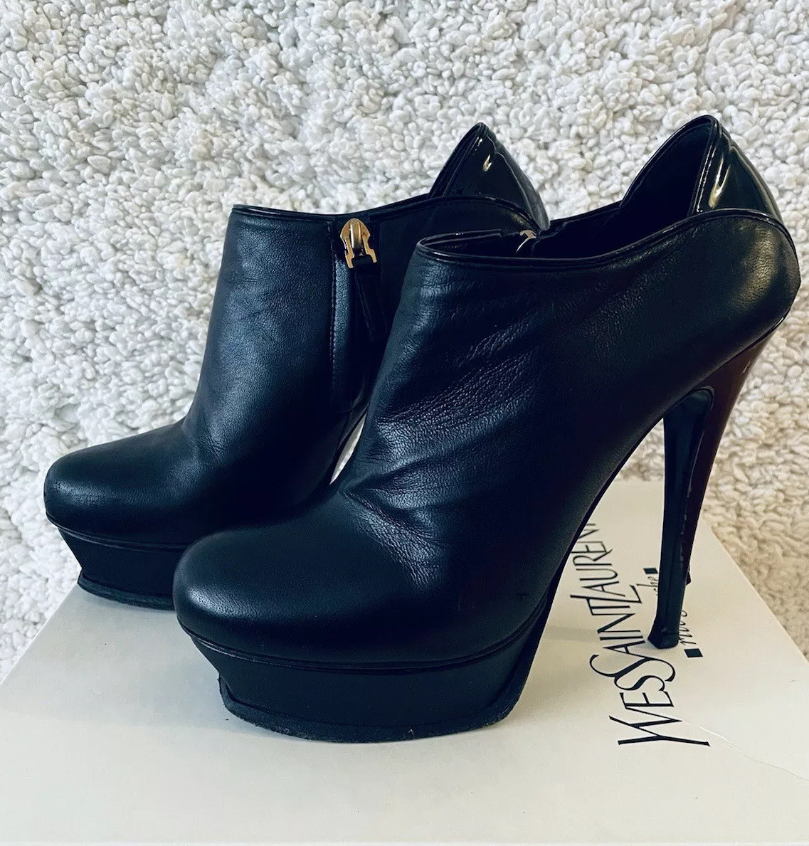 Ysl platform booties clearance, YSL Yves Saint Laurent Black Leather Tribute Ankle Booties Size: 37.5 | eBay clearance